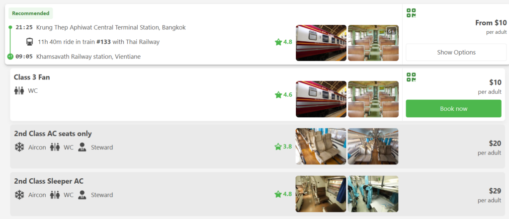 There are various Bangkok to Vientiane train ticket options. Tickets can be booked at the station or via the app. Based on my experience, there is no difference between purchasing the ticket in person and on the app.