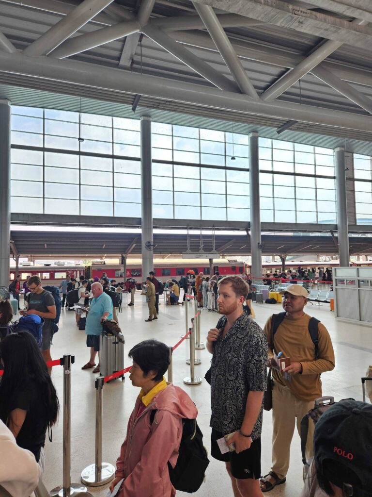 During my Bangkok to Vientiane train experience, I arrived in Vientiane an hour after the planned time. The queue at Thailand immigration was long, so it took a little longer for everyone.