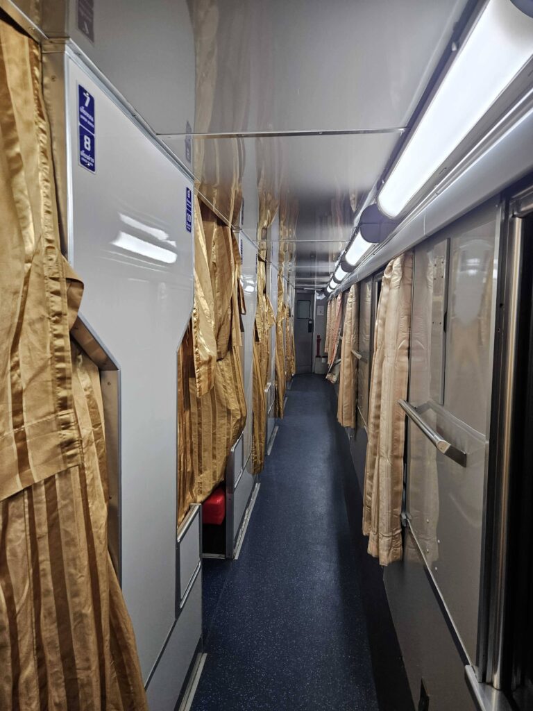 Bangkok to Vientiane train coach for second class sleeper with A/C during the night. Curtains are available for privacy