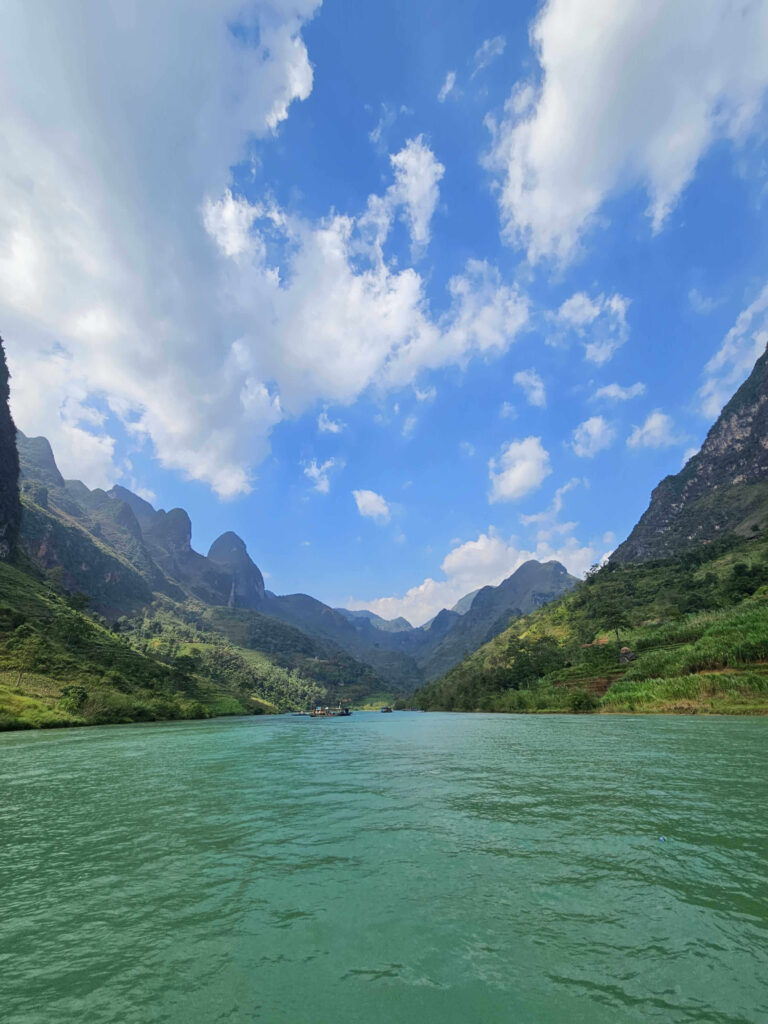I loved the views at Ma Pi Leng Pass. Blessed with good weather, my group stopped for 30 minutes to get some photos, which is also one of my favourite photo spots. At this stop, enjoy the emerald green water of the Nho Quế River flowing through the deep valleys from Yunnan province, China.