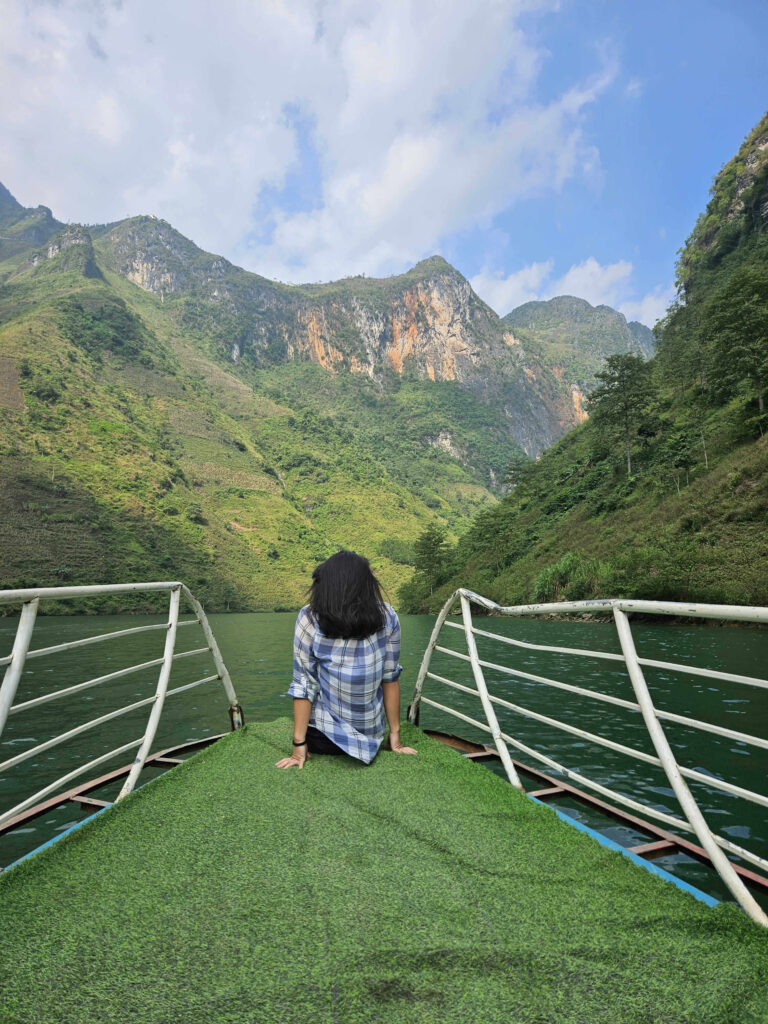 Riding another 30 minutes downhill through the ethnic villages towards the jetty, we took a 1.5-hour cruise along the Nho Que River and through the Tu Sản Canyon. Tu Sản is the deepest canyon in Southeast Asia. The stunning view left me in awe.