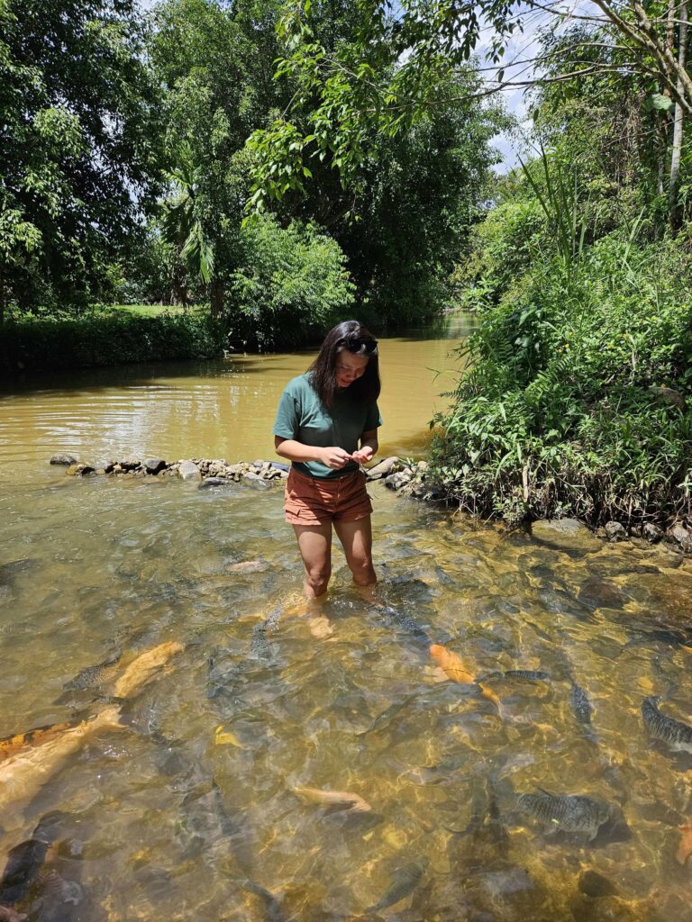 After paying a minimal entrance fee, which includes a packet of fish food, there are guides to guide you to the river. These guides are amiable, sharing with you the best tricks to get those large fish to your feet!