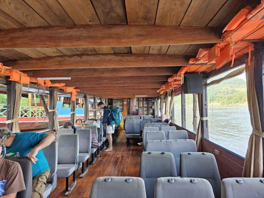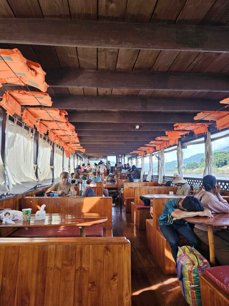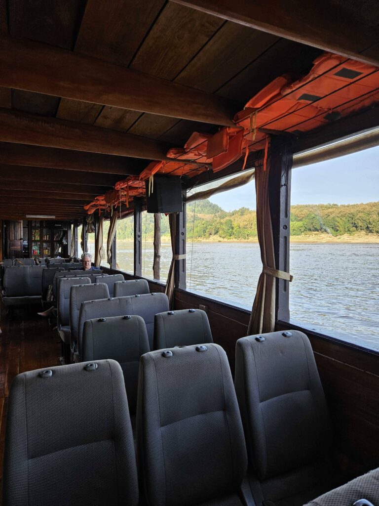 On the other hand, the slow boat from Laos to Thailand is less crowded. On the day of my travel, I was surprised that the slow boat was only at 50% capacity. My friend and I were able to take a row of seats, each! We also could move seats to enjoy the view on both sides of the Mekong River.