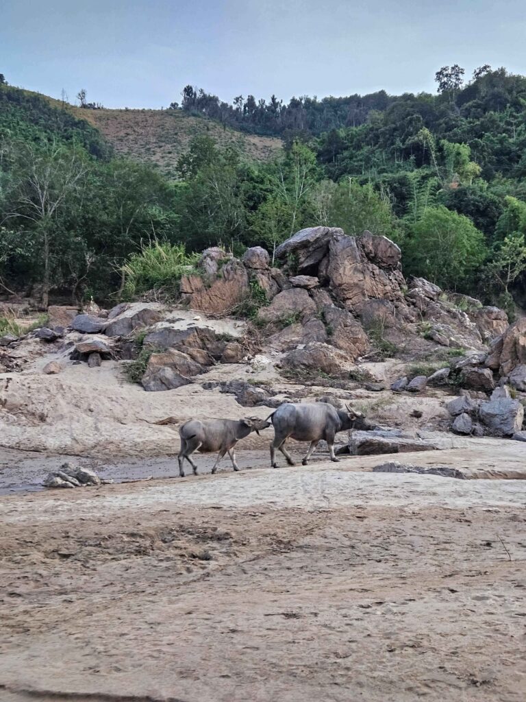 Buffalos along the Mekong River bank!