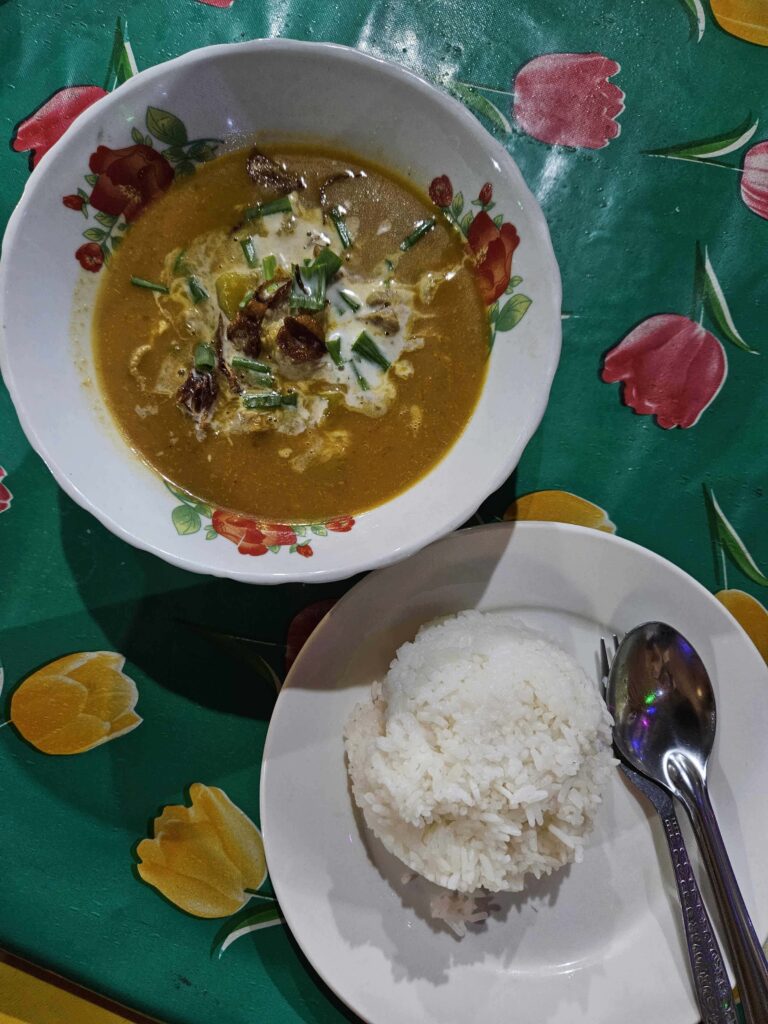 Delicious pork curry with steamed rice at Sabaidee Restaurant